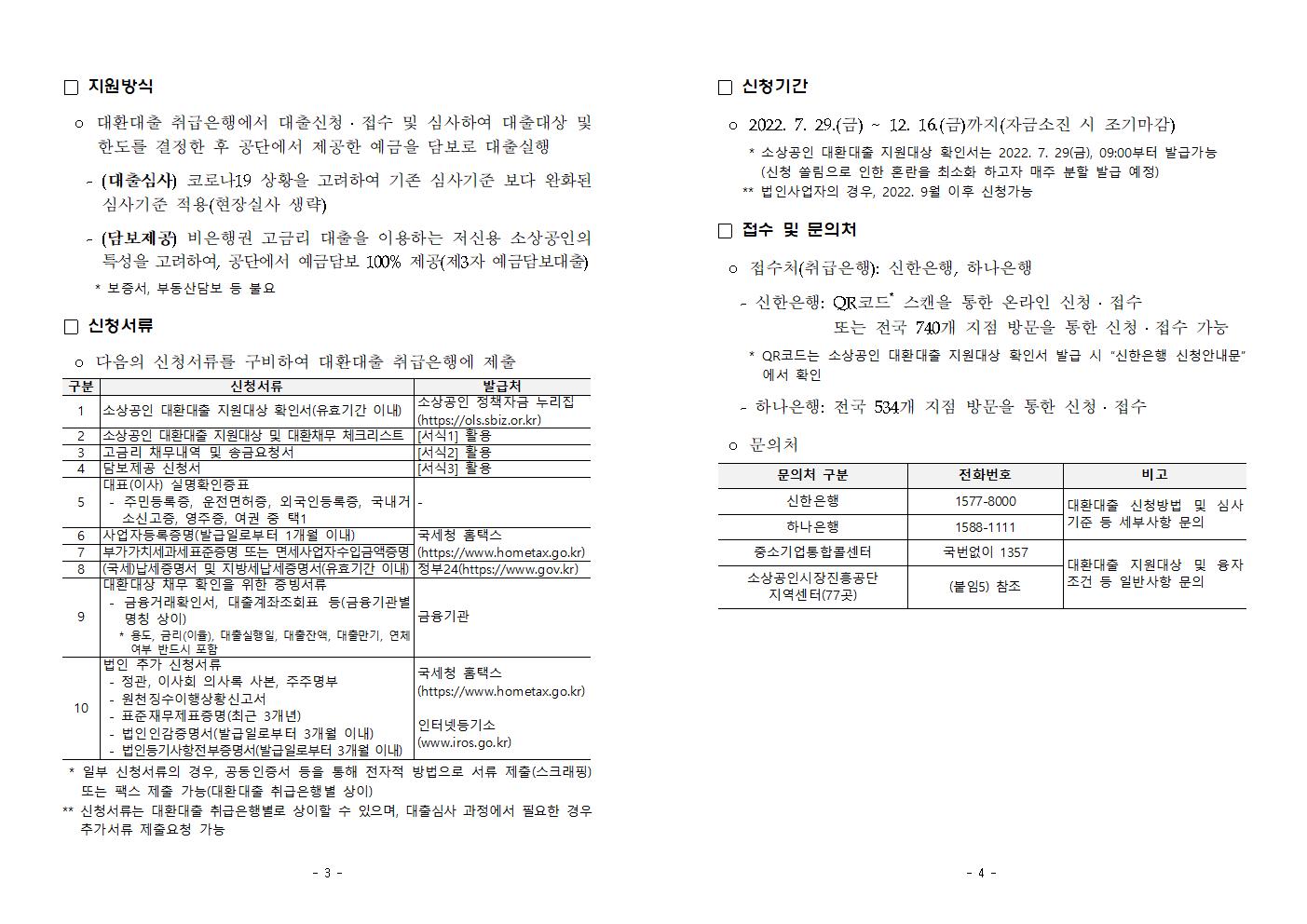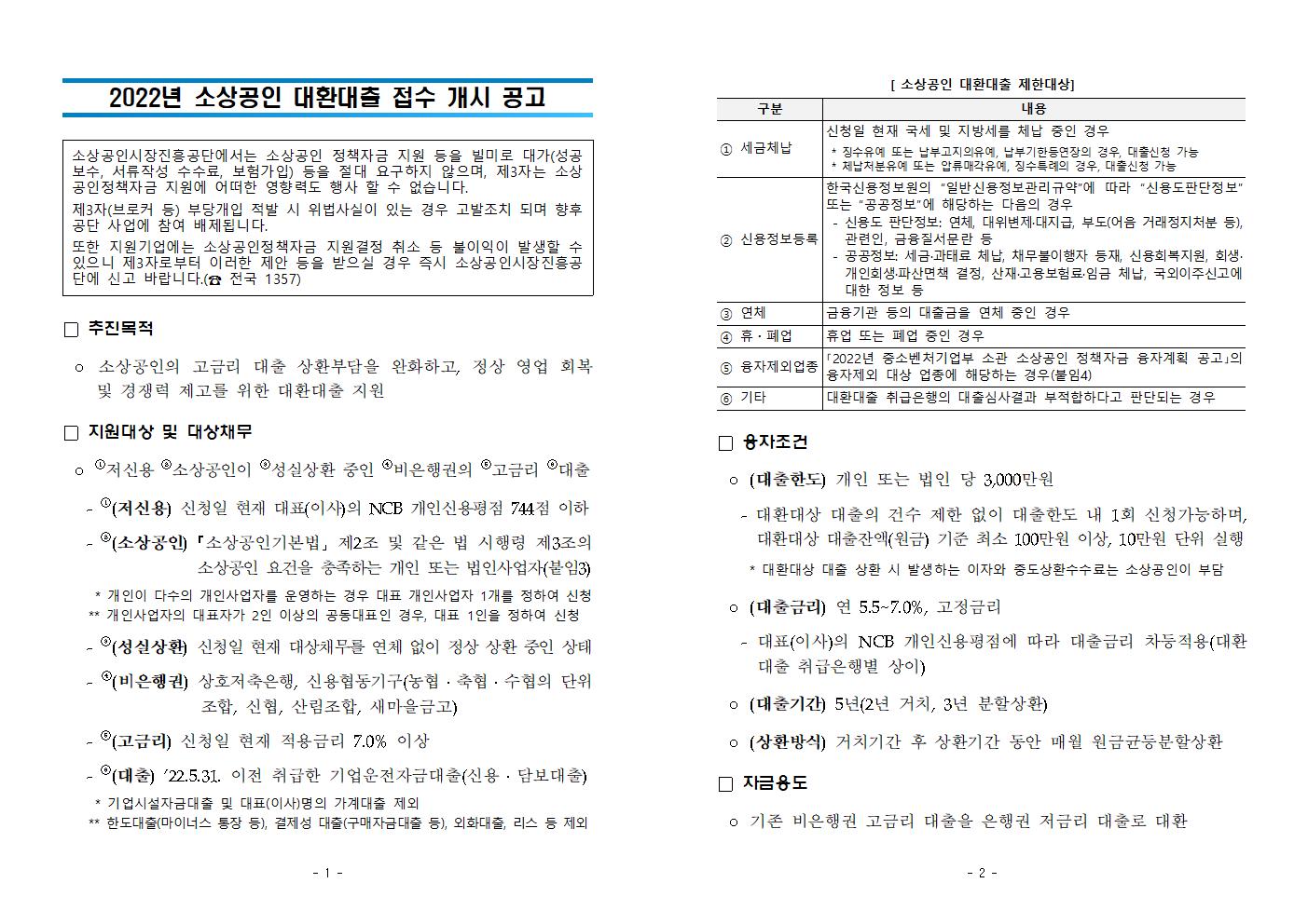 2022년 소상공인 대환대출 접수 개시 공고