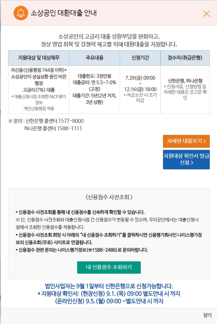 - ①(저신용) 신청일 현재 대표(이사)의 NCB 개인신용평점 744점 이하